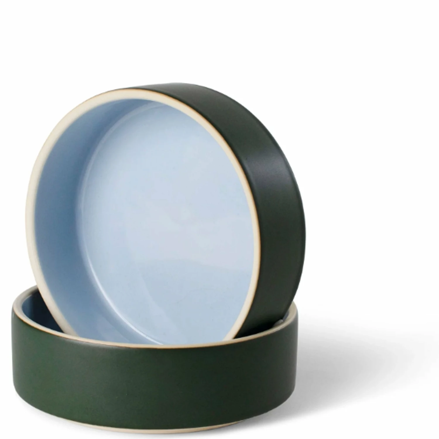Fringe’s Minimal Stoneware Bowl Pet features a matte forest green outer glaze, a glossy light blue inner glaze, and exposed stoneware edges for a charming touch. This classic bowl is also dishwasher safe!
