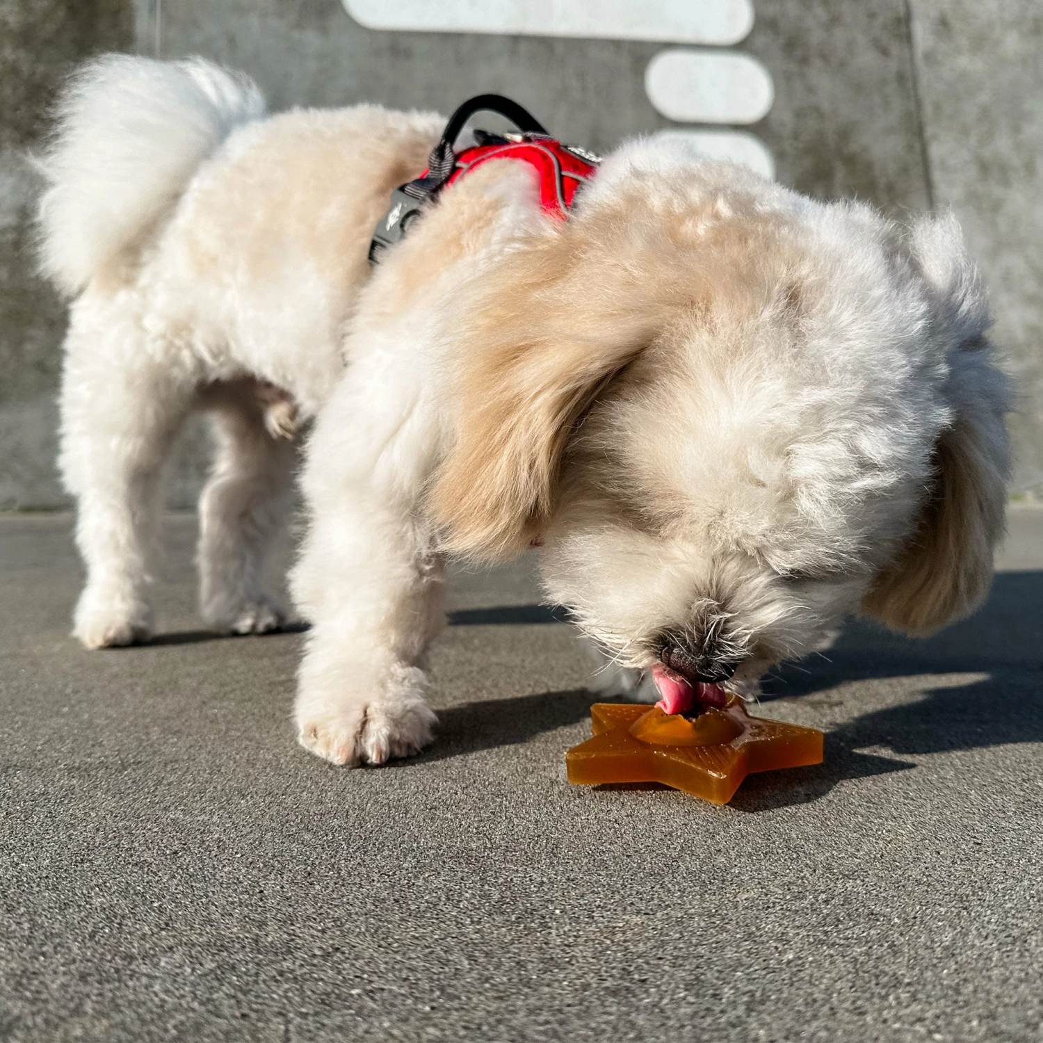 Featuring a small treat hole, Hevea’s Natural Rubber Star Dog Toy offers long-lasting entertainment for your dog with both moist and dry treats. For an added challenge, freeze it with a moist treat beforehand! Ideal for puppies, its diverse textures provide relief for sore gums and teeth, while its soft, natural rubber composition ensures safety. Additionally, it doubles as a playful toy and can be used for fetching fun.