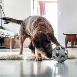 Hevea’s Stellar Ball Dog Toy is a flexible and pliable ball that serves as an exceptional activation toy, ensuring your dog remains engaged for extended periods. Featuring cut-out spaces and a star pattern, it accommodates larger treats for some solo play. It’s durability and softness make it ideal for both indoor and outdoor use as a throw and fetch toy.