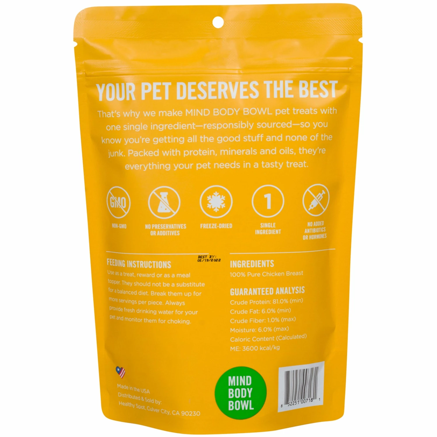MIND BODY BOWL is Healthy Spot’s exclusive collection of all-natural treats and supplements that are human grade and always manufactured in North America with locally sourced ingredients and no added preservatives, additives, antibiotics or hormones.