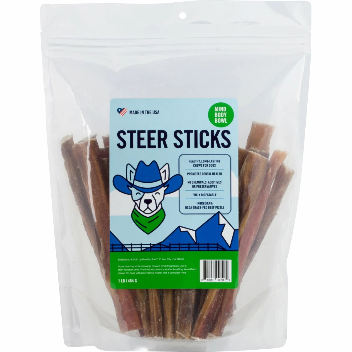 Steer Sticks are fun-sized Bully Sticks for smaller dogs! Also called chewy rolls, they are the one treat that almost every dog loves! When your dog chews on it, it releases endorphins which makes him happy. Plus, they’ll keep your puppy busy for a while. Healthy Spot Steer Sticks are hand-cleaned for minimal odor.