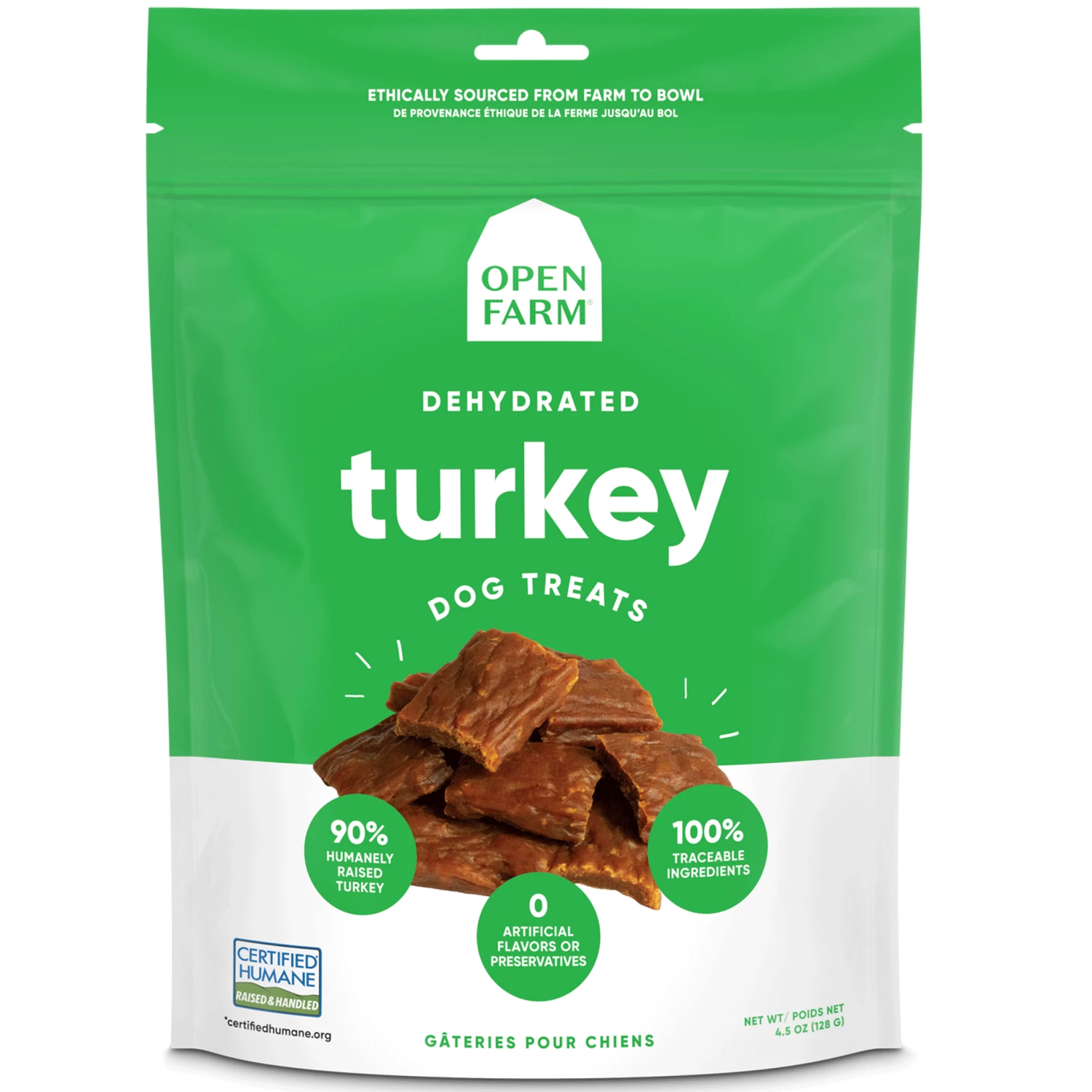 These treats are made from over 90% humanely raised turkey that’s lightly cooked and dehydrated at low temperatures for optimum taste. And they’re glycerine, grain, gluten, and antibiotic free.