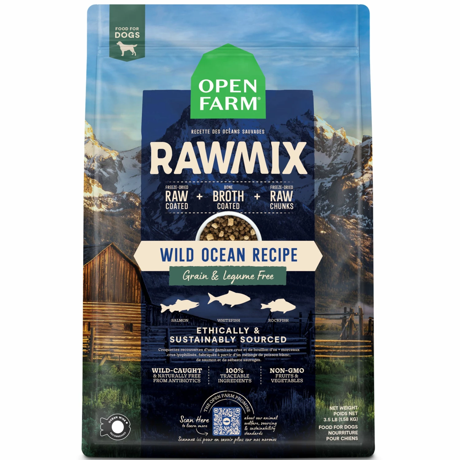 Open Farm’s RawMix is made of nutrient-dense kibble coated in a bone broth and freeze dried raw blend, with added chunks of freeze-dried raw meat. This protein-packed kibble has 100% traceable ingredients and has no added antibiotics or hormones.