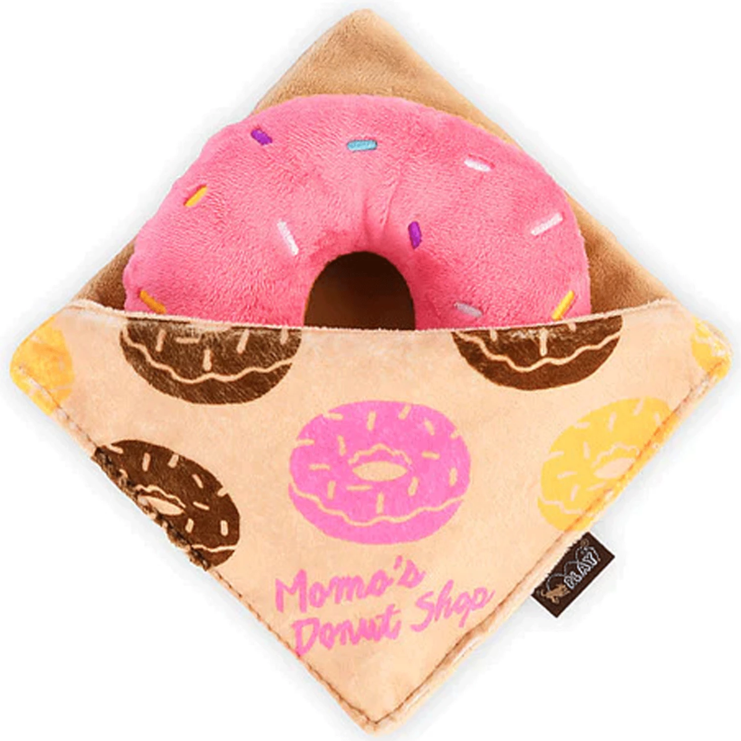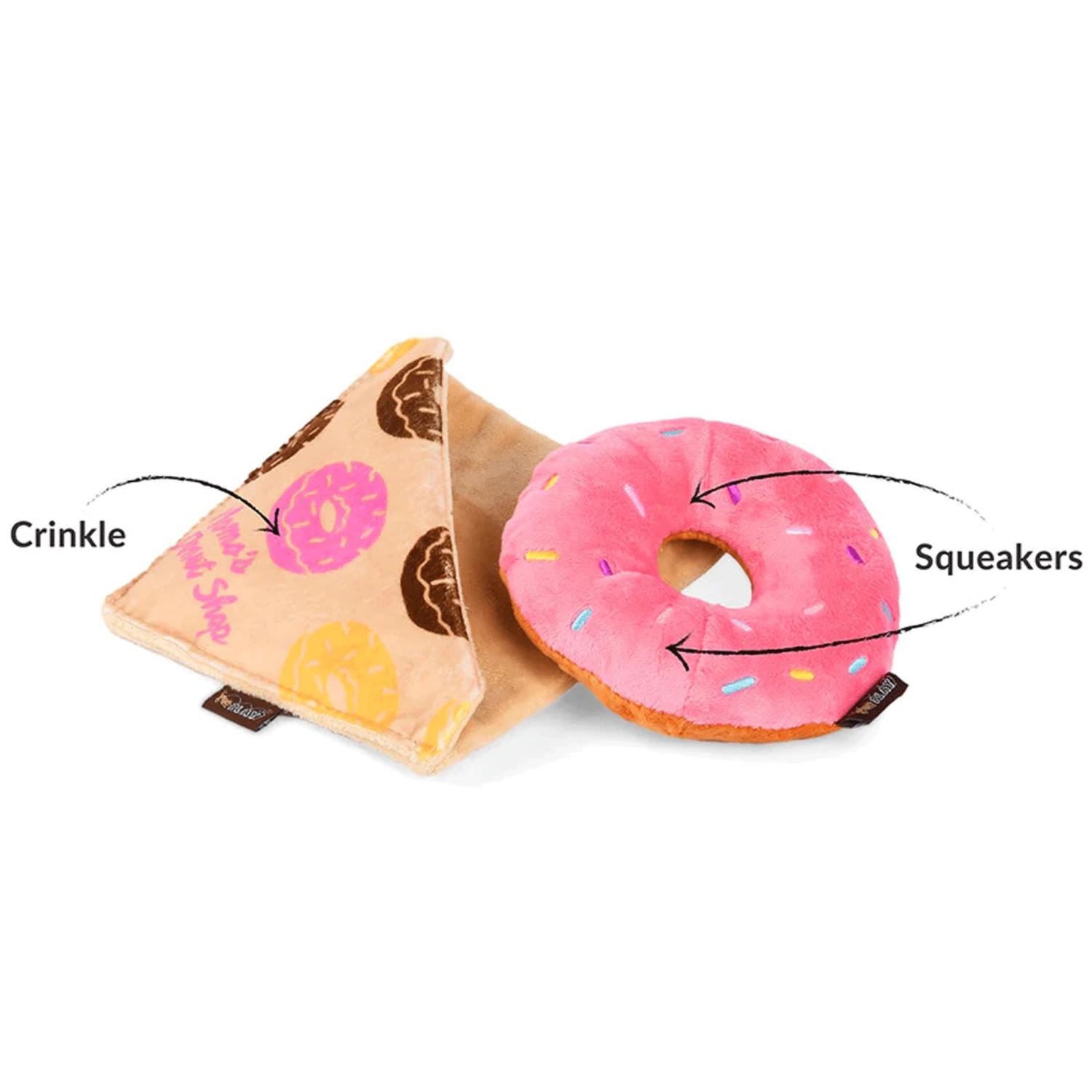 Playtime just became a whole lot sweeter with P.L.A.Y.’s Pink Donut Dog Toy! Surrounded by a crinkle-filled wrapper and stuffed with a squeaker, this adorable donut is as fun as it is adorable!