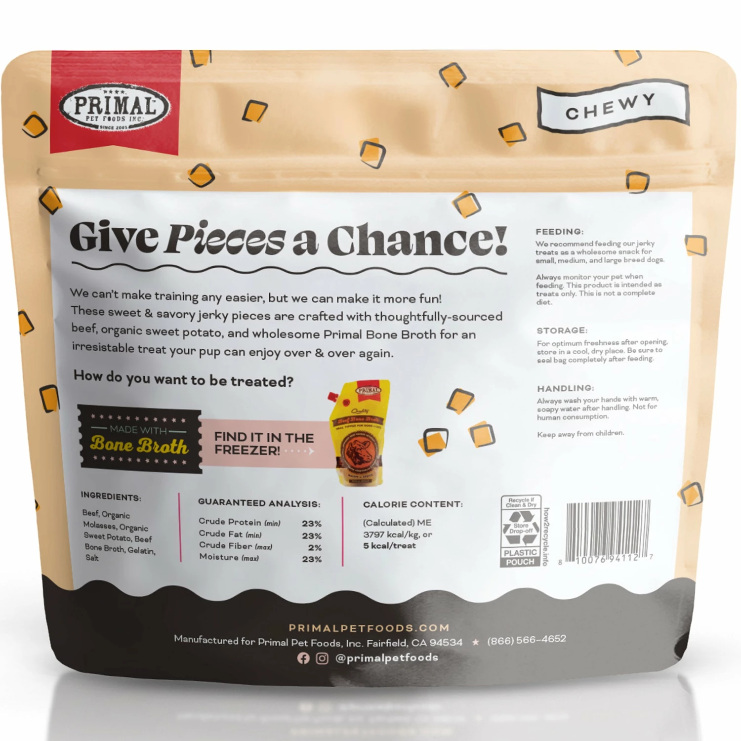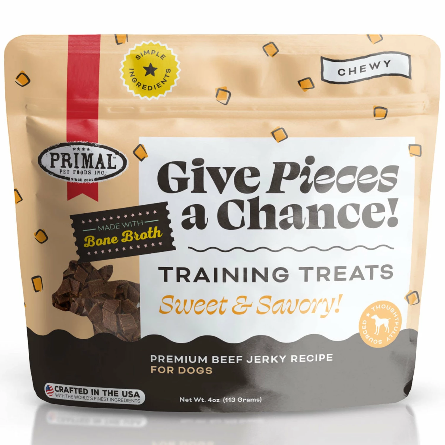 Primal’s Give Pieces a Chance Beef Dog Treats have not only thoughtfully-sourced ingredients like beef but organic sweet potato and bone broth too! More than just a plain jerky treat, your dog will be happy to taste this specially curated and delicious snack.