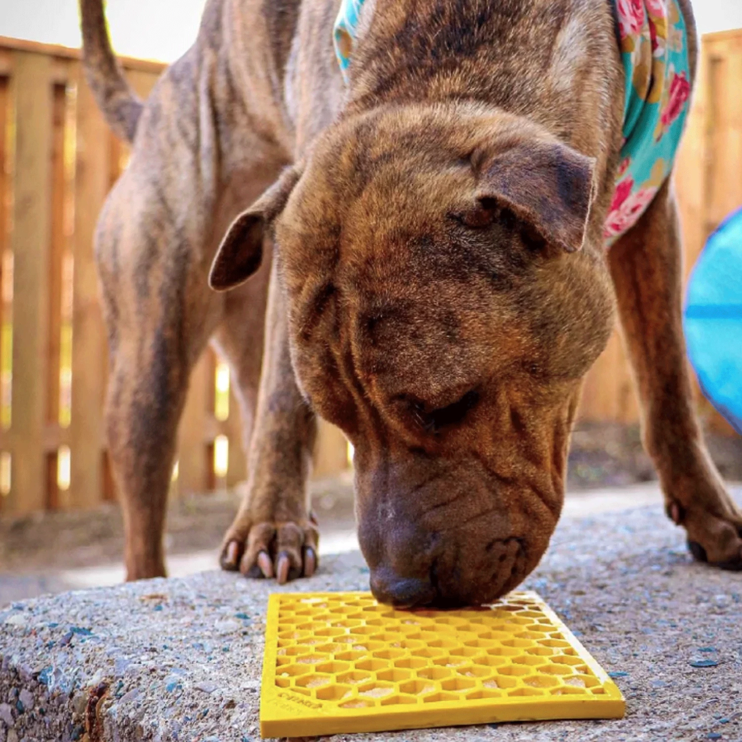 You won’t even bee-lieve how much your pup will love SodaPup’s Honeycomb Licking Mat. Repetitive licking is great for destressing and occupying your dog’s time so smear a soft treat throughout the grooves on the mat and your dog will be raring to go. You can even freeze liquid snacks for longer-lasting fun!