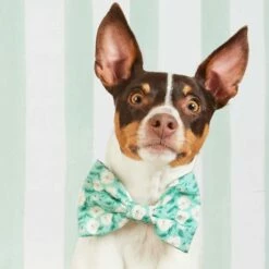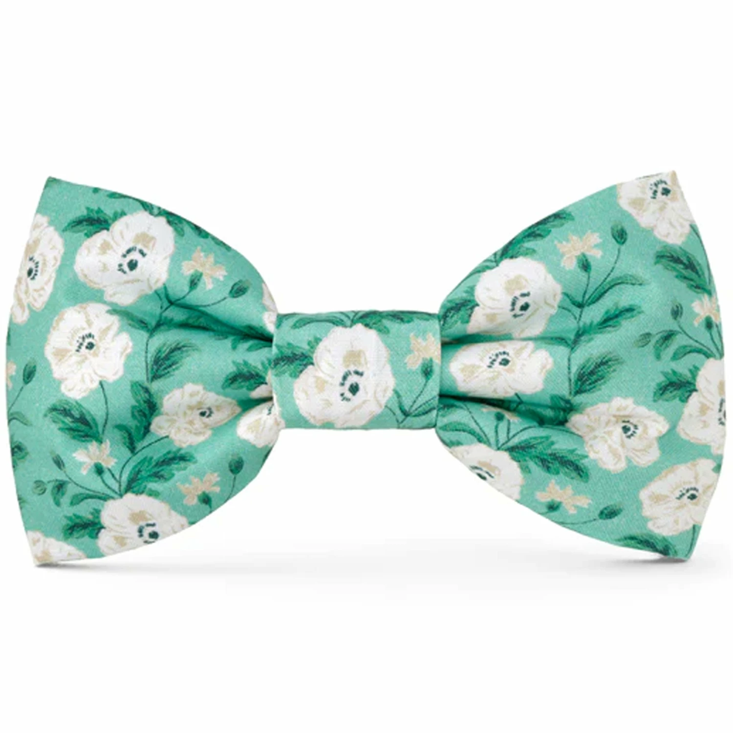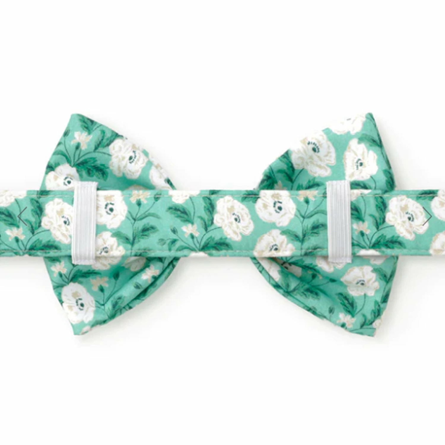 Soft-hued poppies flourish against a backdrop of seafoam green on The Foggy Dog’s Seafoam Poppies Bowtie! The best part? No more bowtie droop! Two elastic loops were added to the bowtie for stability.